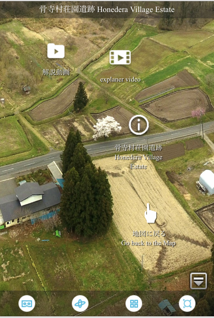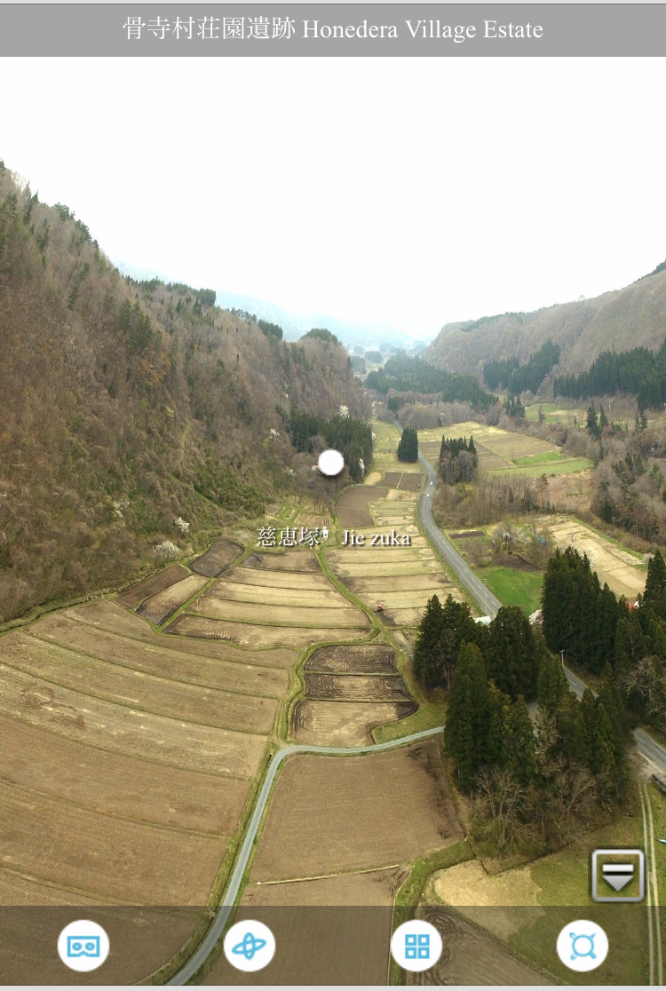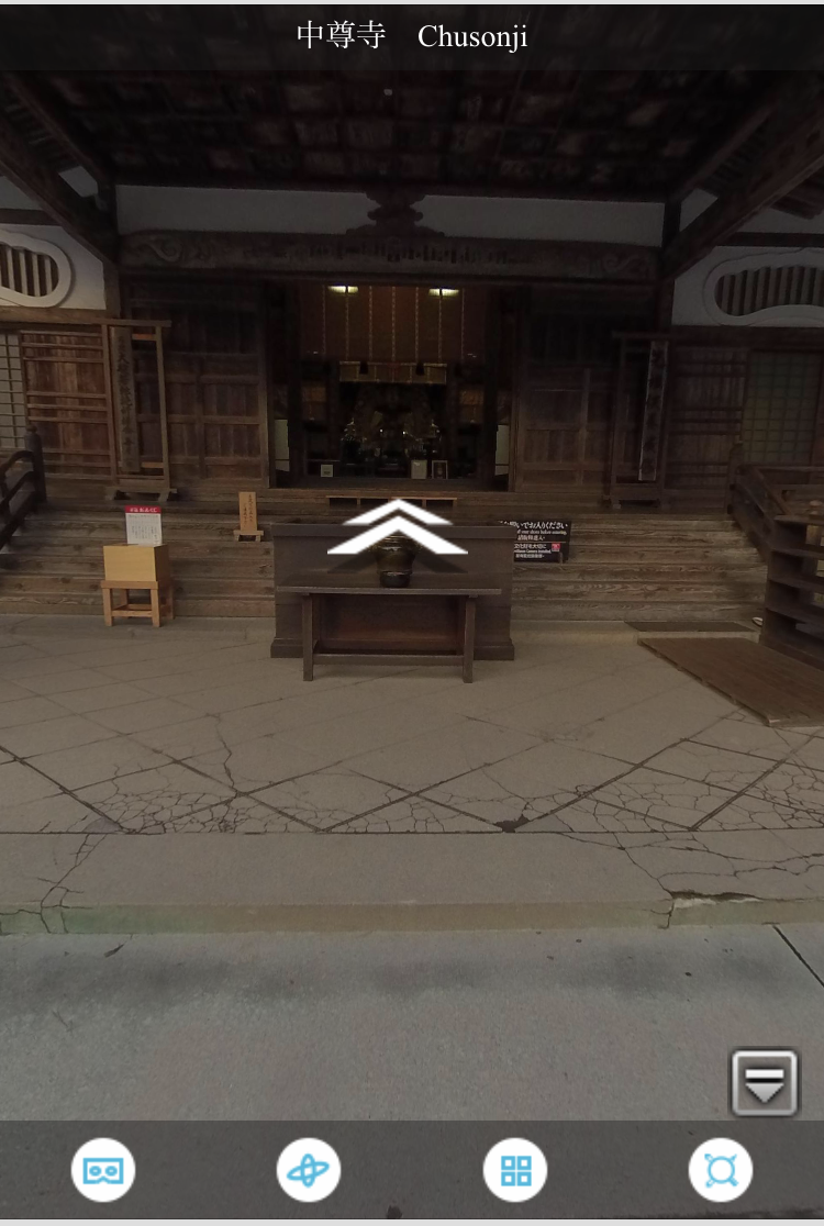 画面下部にあるバーのボタンを押すと好きなパノラマ画像を選択して移動できます